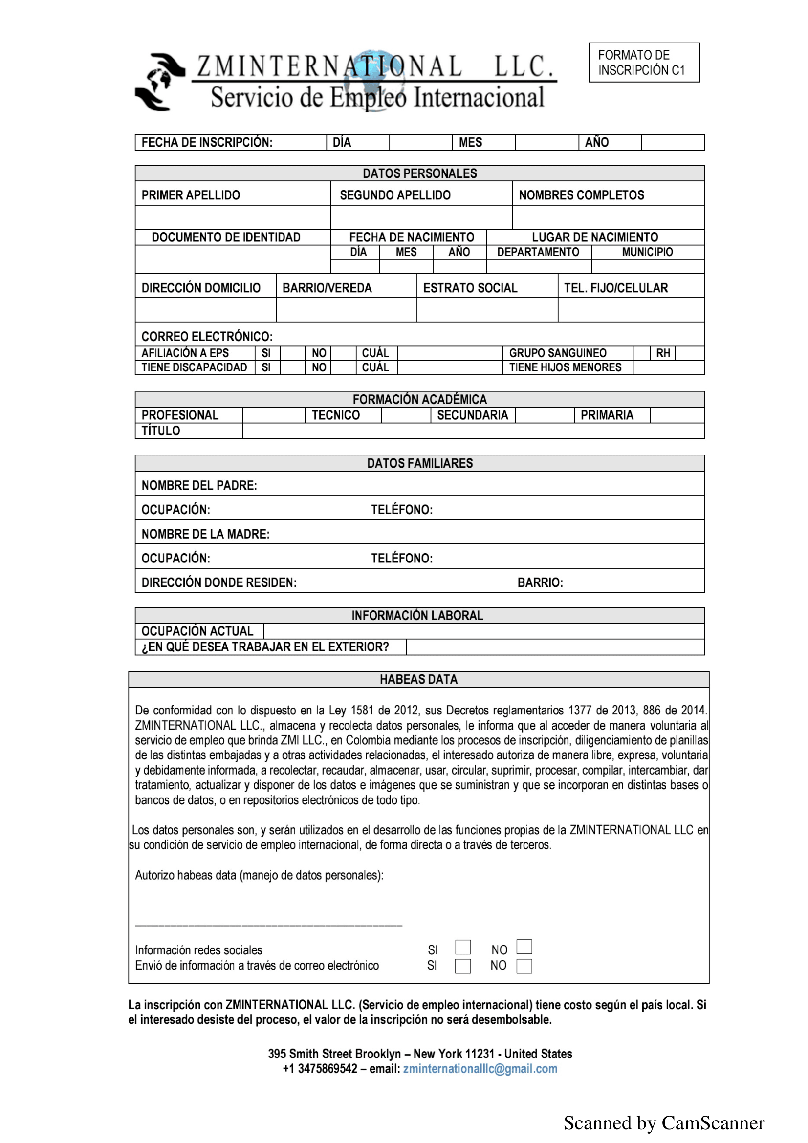 B8. The representative shall not have to make any investment to the main office for the opportunity to work for ZMInternatinal LLC